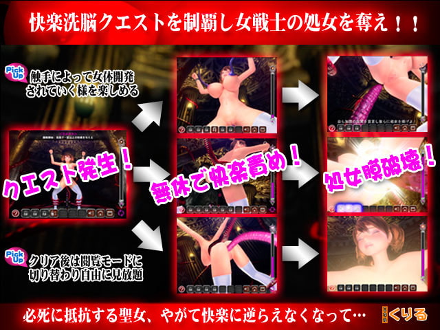 A pleasure-brainwash game about a brigand of creatures that assault a virgin knightess. Simple features and high pace, stress-free gaming that you’ll surely take a liking! Clear quests to enjoy various 3D anime scenes. Clear the full game to freely enjoy unlocked scenes.